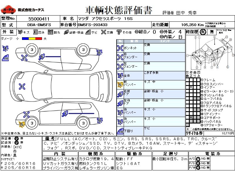 フル装備 / CD / 乗車定員(5人) / エアバッグ / 助手席エアバッグ / サイドエアバッグ / ABS / トラクションコントロール / クルーズコントロール / カーナビゲーション(オンダッシュ,SSD) / テレビ(アナログ) / 地デジTV / バックカメラ / アルミホイール(16インチ) / スマートキー / ディスチャージ / フォグランプ / リアスポイラー /