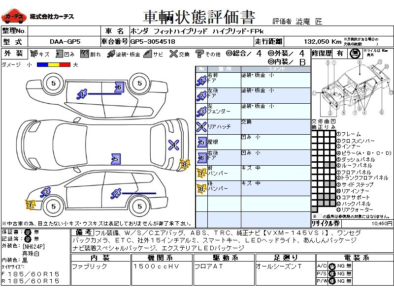 フル装備 / CD / 乗車定員(5人) / 集中ドアロック / エアバッグ / 助手席エアバッグ / サイドエアバッグ / ABS / トラクションコントロール / カーナビゲーション(インダッシュ,SSD,2DIN) / テレビ(アナログ) / バックカメラ / ETC / アルミホイール(社外)(15インチ) / スマートキー / ウインカーミラー / ハイマウントストップランプ /