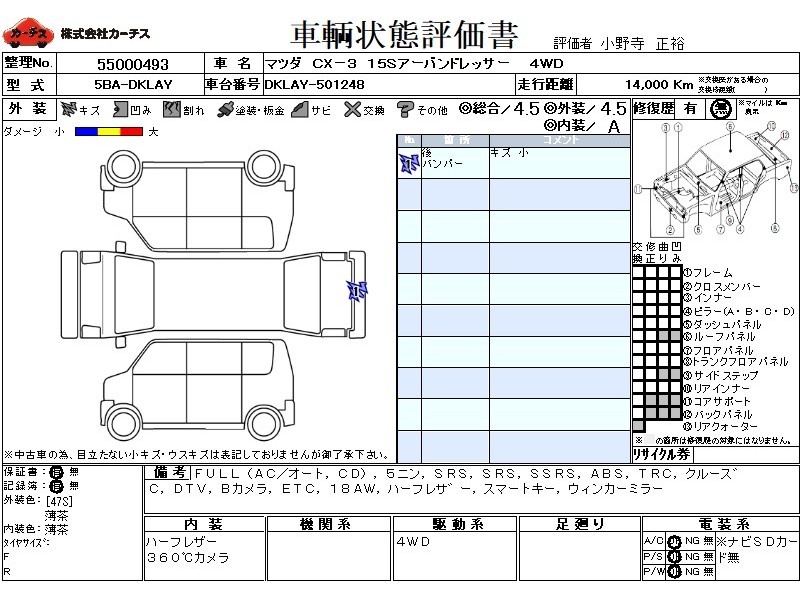フル装備 / CD / 乗車定員(5人) / エアバッグ / 助手席エアバッグ / サイドエアバッグ / ABS / トラクションコントロール / クルーズコントロール / 地デジTV / バックカメラ / ETC / アルミホイール(18インチ) / ハーフレザーシート / スマートキー / ウインカーミラー /