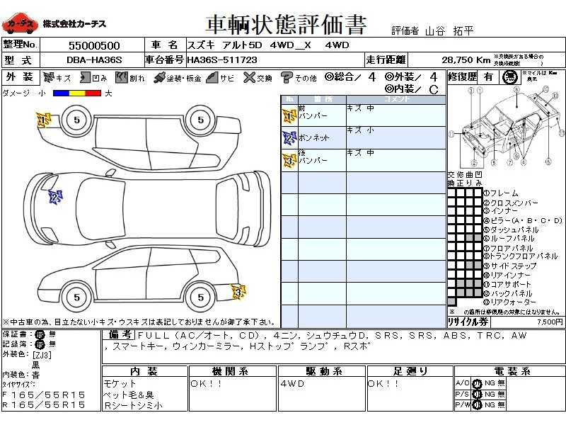 フル装備 / CD / 乗車定員(4人) / 集中ドアロック / エアバッグ / 助手席エアバッグ / ABS / トラクションコントロール / アルミホイール / スマートキー / ウインカーミラー / ハイマウントストップランプ / リアスポイラー /