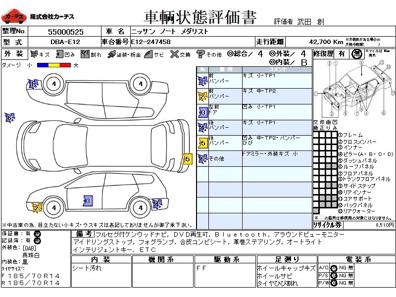 フル装備 / CD(社外) / 乗車定員(5人) / エアバッグ / 助手席エアバッグ / ABS / カーナビゲーション(社外)(SSD) / テレビ(社外) / 地デジTV(社外) / バックカメラ / ETC(社外) / スマートキー / ハイマウントストップランプ / フォグランプ /
