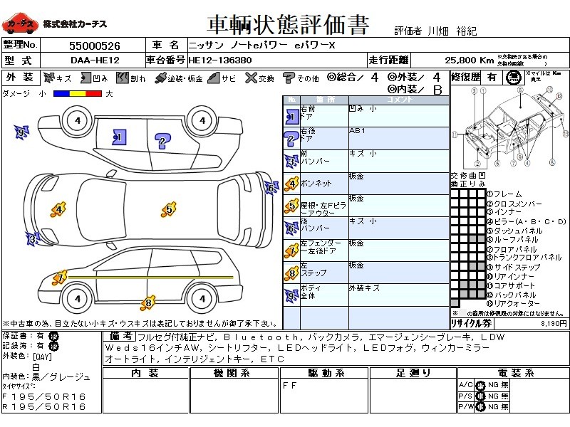 フル装備 / CD / 乗車定員(5人) / エアバッグ / 助手席エアバッグ / ABS / カーナビゲーション(SSD) / テレビ(アナログ) / 地デジTV / バックカメラ / ETC / アルミホイール(社外)(16インチ) / スマートキー / ウインカーミラー / ハイマウントストップランプ /