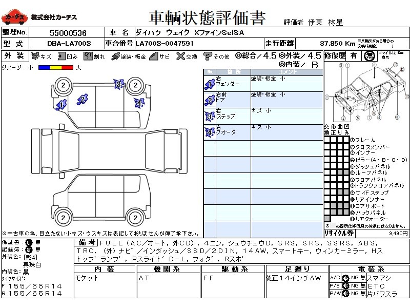 フル装備 / CD(社外) / 乗車定員(4人) / 集中ドアロック / エアバッグ / 助手席エアバッグ / サイドエアバッグ / ABS / トラクションコントロール / カーナビゲーション(社外)(インダッシュ,SSD,2DIN) / 地デジTV(社外) / ETC(社外) / アルミホイール(14インチ) / スマートキー / ウインカーミラー / ハイマウントストップランプ / パワースライドドア / フォグランプ / リアスポイラー /