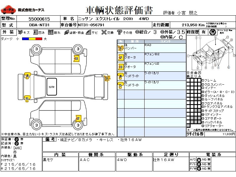 フル装備 / CD / 乗車定員(5人) / 集中ドアロック / エアバッグ / 助手席エアバッグ / ABS / クルーズコントロール / カーナビゲーション(インダッシュ,SSD,2DIN) / バックカメラ / ETC(社外) / アルミホイール(社外)(16インチ) / サンルーフ / キーレスエントリー / ハイマウントストップランプ / フォグランプ /