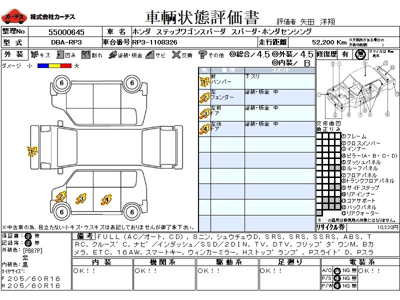 フル装備 / CD / 乗車定員(8人) / 集中ドアロック / エアバッグ / 助手席エアバッグ / サイドエアバッグ / ABS / トラクションコントロール / クルーズコントロール / カーナビゲーション(インダッシュ,SSD,2DIN) / テレビ(アナログ) / 地デジTV / フリップダウンモニタ / バックカメラ / ETC / アルミホイール(16インチ) / スマートキー / ウインカーミラー / ハイマウントストップランプ / パワースライドドア / フォグランプ / リアスポイラー /