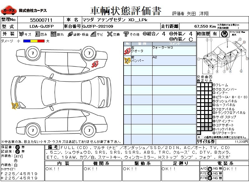 フル装備 / CD / マルチ(ナビ) / エアコン(オート) / テレビ(アナログ) / 乗車定員(5人) / 集中ドアロック / エアバッグ / 助手席エアバッグ / サイドエアバッグ / ABS / トラクションコントロール / クルーズコントロール / 地デジTV / バックカメラ / ETC / アルミホイール(19インチ) / 革シート(白) / スマートキー / ウインカーミラー / ハイマウントストップランプ / フォグランプ / フロントスポイラー(社外) / リアスポイラー / 足回り /