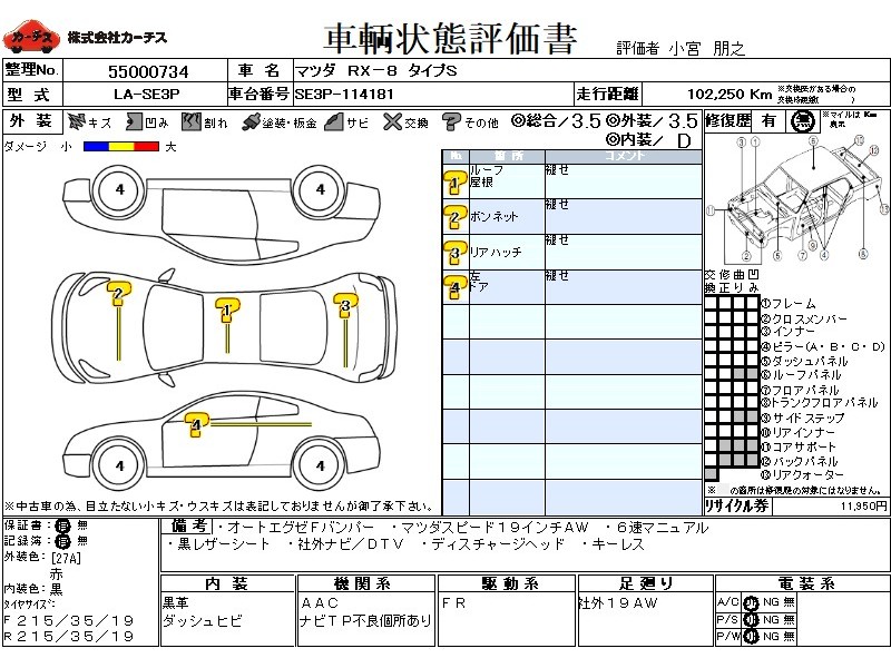 フル装備 / CD(社外) / 乗車定員(4人) / エアバッグ / 助手席エアバッグ / ABS / トラクションコントロール / カーナビゲーション(社外)(インダッシュ,2DIN) / テレビ(アナログ) / アルミホイール(社外)(19インチ) / 革シート(黒) / キーレスエントリー / ディスチャージ / フロントスポイラー(社外) /