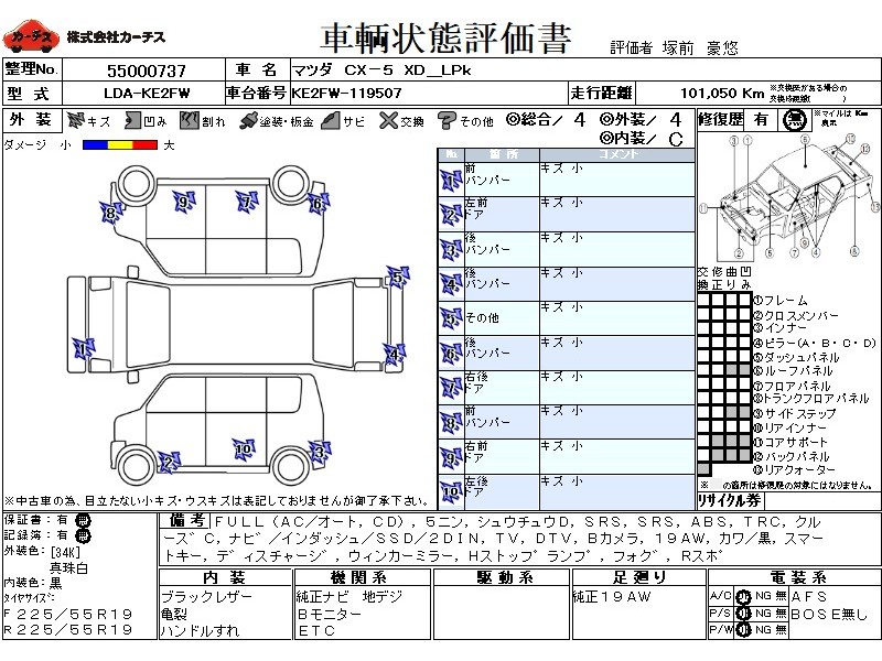 フル装備 / CD / 乗車定員(5人) / 集中ドアロック / エアバッグ / 助手席エアバッグ / ABS / トラクションコントロール / クルーズコントロール / カーナビゲーション(インダッシュ,SSD,2DIN) / テレビ(アナログ) / 地デジTV / バックカメラ / ETC(社外) / アルミホイール(19インチ) / 革シート(黒) / スマートキー / ディスチャージ / ウインカーミラー / ハイマウントストップランプ / フォグランプ / リアスポイラー /