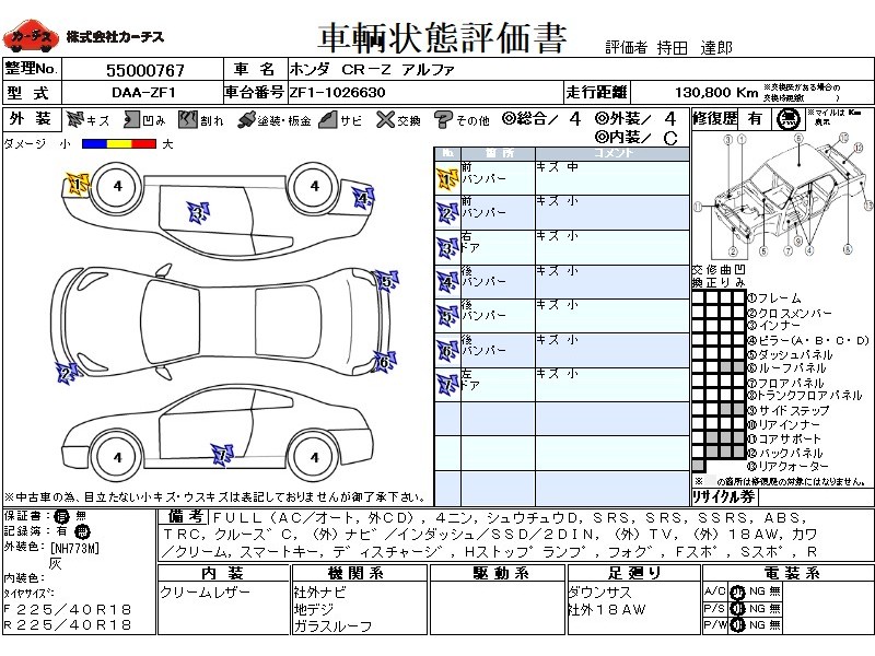 フル装備 / CD(社外) / 乗車定員(4人) / 集中ドアロック / エアバッグ / 助手席エアバッグ / サイドエアバッグ / ABS / トラクションコントロール / クルーズコントロール / カーナビゲーション(社外)(インダッシュ,SSD,2DIN) / テレビ(社外) / 地デジTV(社外) / ETC(社外) / アルミホイール(社外)(18インチ) / 革シート(クリーム) / スマートキー / ディスチャージ / ハイマウントストップランプ / フォグランプ / フロントスポイラー / サイドスポイラー / リアスポイラー / 足回り /