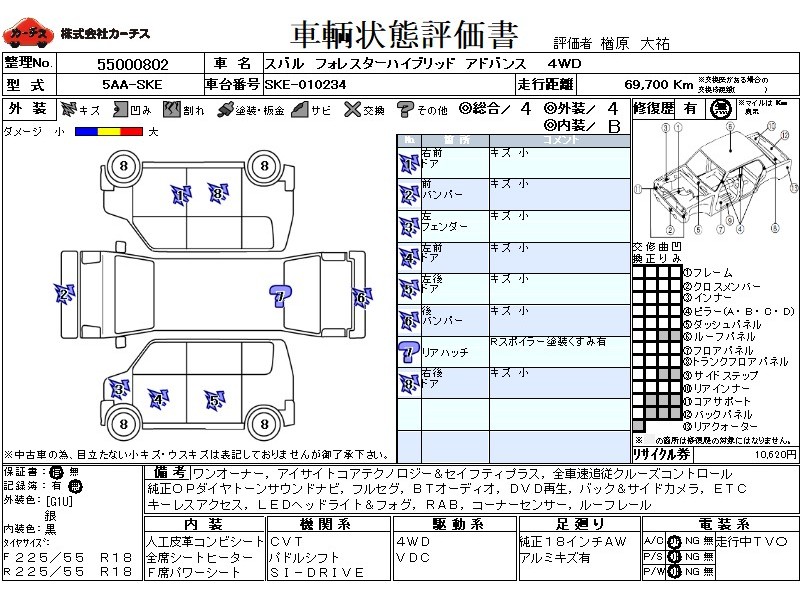 ワンオーナー アイサイトコアテクノロジー&セイフティプラス 全車速追従機能付クルーズコントロール 純正OPダイヤトーンサウンドナビ&連動ETC フルセグ BTオーディオ DVD再生 バック&サイドカメラ キーレスアクセス パワーバックドア LEDヘッドライト&LEDフォグ パドルシフト SI-DRIVE 全席シートヒーター 6エアバッグ 禁煙車