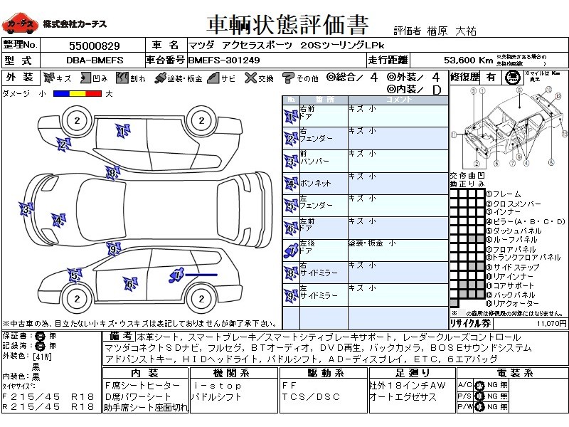 フル装備 / CD / エアバッグ / 助手席エアバッグ / サイドエアバッグ / ABS / トラクションコントロール / クルーズコントロール / カーナビゲーション(オンダッシュ) / 地デジTV / バックカメラ / ETC / アルミホイール(社外)(18インチ) / 革シート(黒) / スマートキー / ディスチャージ / ウインカーミラー / フォグランプ / リアスポイラー / 足回り /