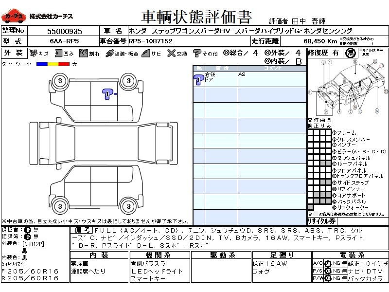 フル装備 / CD / 乗車定員(7人) / 集中ドアロック / エアバッグ / 助手席エアバッグ / ABS / トラクションコントロール / クルーズコントロール / カーナビゲーション(インダッシュ,SSD,2DIN) / テレビ(アナログ) / バックカメラ / アルミホイール(16インチ) / スマートキー / パワースライドドア / サイドスポイラー / リアスポイラー /