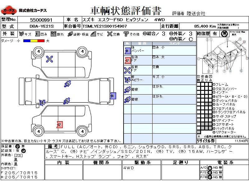 フル装備 / CD(社外) / 乗車定員(5人) / 集中ドアロック / エアバッグ / 助手席エアバッグ / ABS / トラクションコントロール / クルーズコントロール / カーナビゲーション(社外)(インダッシュ,SSD,2DIN) / テレビ(社外) / ETC(社外) / アルミホイール(社外)(15インチ) / ハーフレザーシート / スマートキー / ハイマウントストップランプ / フォグランプ / リアスポイラー /
