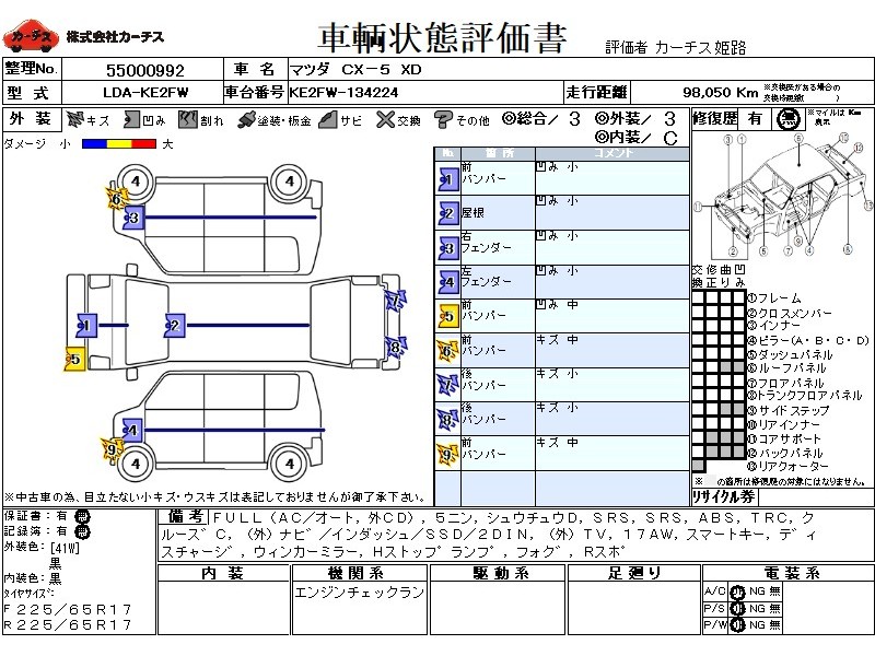 フル装備 / CD(社外) / 乗車定員(5人) / 集中ドアロック / エアバッグ / 助手席エアバッグ / ABS / トラクションコントロール / クルーズコントロール / カーナビゲーション(社外)(インダッシュ,SSD,2DIN) / テレビ(社外) / 地デジTV(社外) / ETC(社外) / アルミホイール(17インチ) / スマートキー / ディスチャージ / ウインカーミラー / ハイマウントストップランプ / フォグランプ / リアスポイラー /