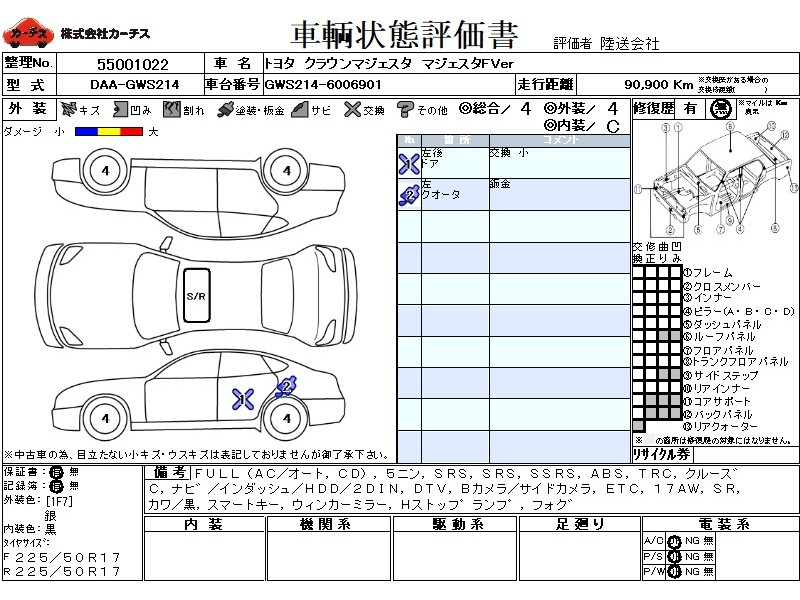 フル装備 / CD / 乗車定員(5人) / エアバッグ / 助手席エアバッグ / サイドエアバッグ / ABS / トラクションコントロール / クルーズコントロール / カーナビゲーション(インダッシュ,HDD,2DIN) / 地デジTV / バックカメラ(サイドカメラ) / ETC / アルミホイール(17インチ) / サンルーフ / 革シート(黒) / スマートキー / ウインカーミラー / ハイマウントストップランプ / フォグランプ /