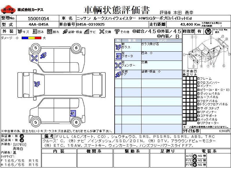 フル装備 / CD / 集中ドアロック / エアバッグ / 助手席エアバッグ / サイドエアバッグ / ABS / トラクションコントロール / クルーズコントロール / カーナビゲーション(社外)(インダッシュ,SSD,2DIN) / テレビ(社外) / 地デジTV(社外) / バックカメラ(フロント) / ETC(社外) / アルミホイール(15インチ) / スマートキー / ウインカーミラー / ハイマウントストップランプ / パワースライドドア / フォグランプ / サイドスポイラー / リアスポイラー /