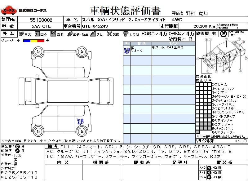 | 外装評価 | 4.5 |