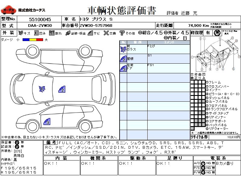 フル装備 / CD / 乗車定員(5人) / 集中ドアロック / エアバッグ / 助手席エアバッグ / サイドエアバッグ / ABS / トラクションコントロール / カーナビゲーション(インダッシュ,SSD,2DIN) / 地デジTV / バックカメラ / ETC / アルミホイール(15インチ) / スマートキー / ディスチャージ / ウインカーミラー / ハイマウントストップランプ / フォグランプ / リアスポイラー /