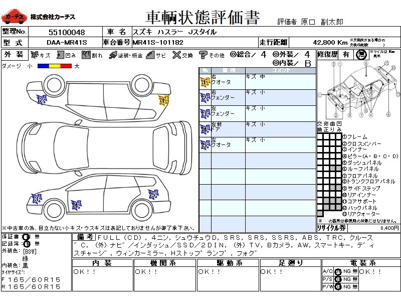 フル装備 / CD / 乗車定員(4人) / 集中ドアロック / エアバッグ / 助手席エアバッグ / サイドエアバッグ / ABS / トラクションコントロール / クルーズコントロール / カーナビゲーション(社外)(インダッシュ,SSD,2DIN) / テレビ(社外) / 地デジTV(社外) / バックカメラ / アルミホイール / スマートキー / ディスチャージ / ウインカーミラー / ハイマウントストップランプ / フォグランプ /