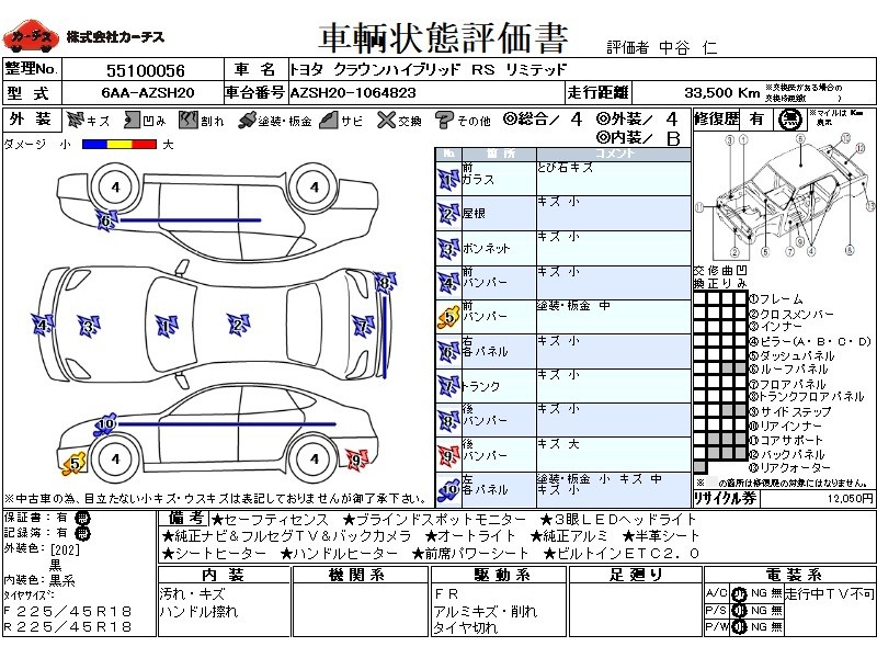 フル装備 / CD / 乗車定員(5人) / 集中ドアロック / エアバッグ / 助手席エアバッグ / サイドエアバッグ / ABS / トラクションコントロール / クルーズコントロール / カーナビゲーション(オンダッシュ,SSD,2DIN) / 地デジTV / バックカメラ / ETC / アルミホイール(18インチ) / ハーフレザーシート / スマートキー / ウインカーミラー / ハイマウントストップランプ / フォグランプ / リアスポイラー /