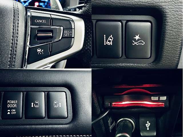 フル装備 / CD / 乗車定員(5人) / エアバッグ / 助手席エアバッグ / サイドエアバッグ / ABS / クルーズコントロール / カーナビゲーション(SSD) / テレビ(アナログ) / 地デジTV / フリップダウンモニタ / バックカメラ(フロント) / ETC(社外) / アルミホイール(18インチ) / スマートキー / ウインカーミラー / ハイマウントストップランプ / パワースライドドア / フォグランプ /