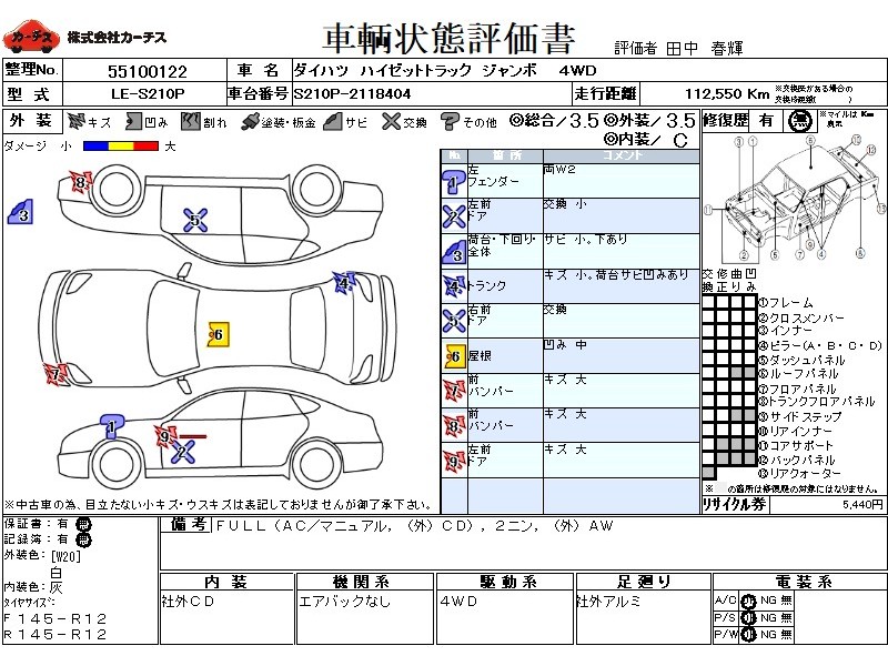 フル装備 / CD(社外) / 乗車定員(2人) / アルミホイール(社外) /