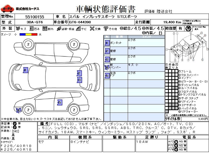 フル装備 / CD / マルチ(ナビ) / エアコン(オート) / テレビ(アナログ) / 乗車定員(5人) / 集中ドアロック / エアバッグ / 助手席エアバッグ / サイドエアバッグ / ABS / トラクションコントロール / クルーズコントロール / 地デジTV / バックカメラ(サイドカメラ) / ETC(社外) / アルミホイール(18インチ) / スマートキー / ウインカーミラー / ハイマウントストップランプ / フォグランプ / サイドスポイラー / リアスポイラー /