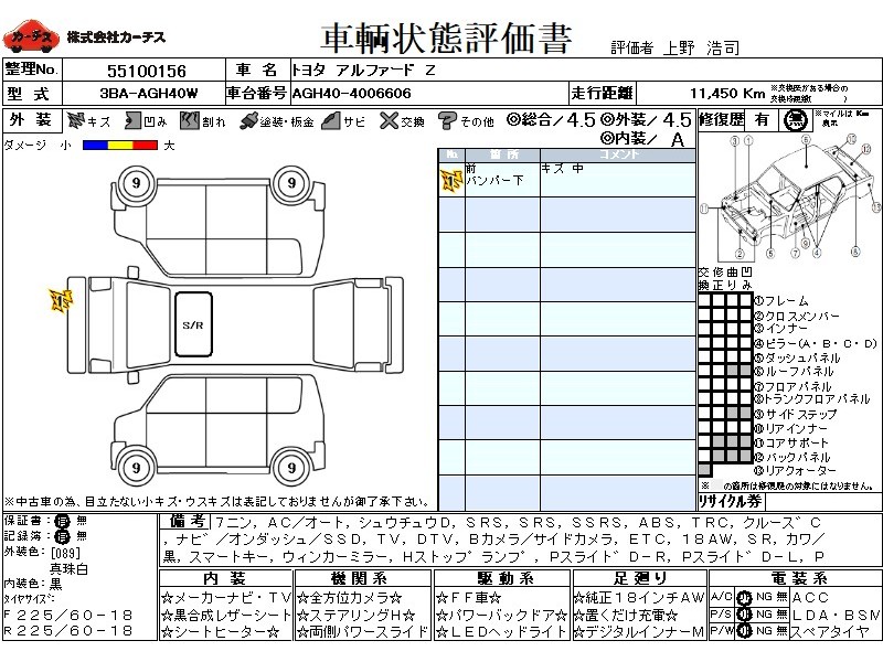 乗車定員(7人) / エアコン(オート) / パワーステアリング / パワーウィンドウ / 集中ドアロック / エアバッグ / 助手席エアバッグ / サイドエアバッグ / ABS / トラクションコントロール / クルーズコントロール / カーナビゲーション(オンダッシュ,SSD) / テレビ(アナログ) / 地デジTV / バックカメラ(サイドカメラ) / ETC / アルミホイール(18インチ) / サンルーフ / 革シート(黒) / スマートキー / ウインカーミラー / ハイマウントストップランプ / パワースライドドア / パワーバックドア / フォグランプ / リアスポイラー /