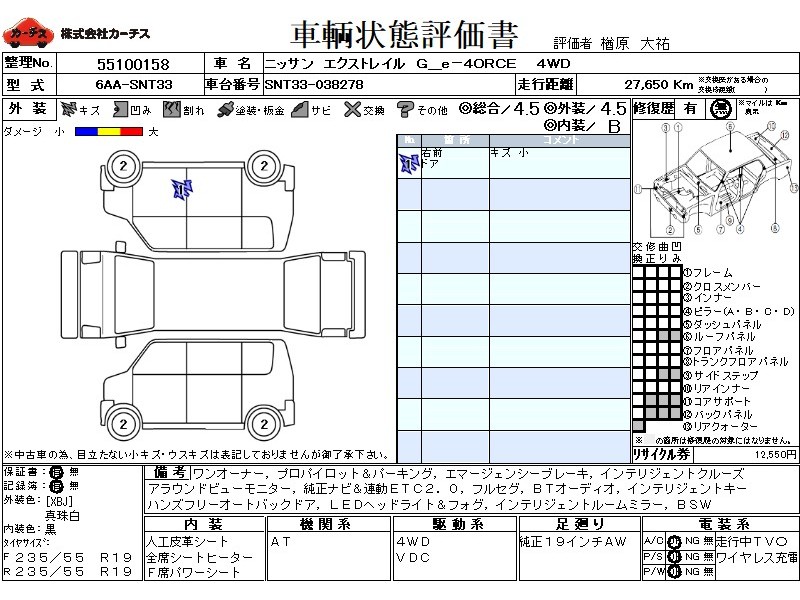 乗車定員(5人) / エアコン(Wエアコン・オート) / パワーステアリング / パワーウィンドウ / エアバッグ / 助手席エアバッグ / サイドエアバッグ / ABS / トラクションコントロール / クルーズコントロール / カーナビゲーション(オンダッシュ) / 地デジTV / バックカメラ(フロント) / ETC / アルミホイール(19インチ) / スマートキー / ウインカーミラー / パワーバックドア / フォグランプ / ルーフレール / リアスポイラー /