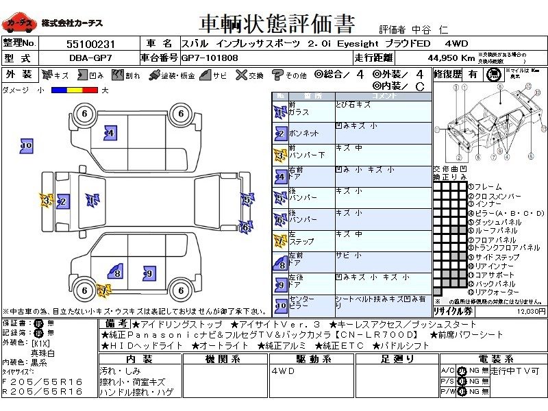 4WD!アイドリングストップ!アイサイト3!純正ナビ&フルセグTV&DVD&BT&バックカメラ!HIDヘッドライト!オートライト!純正アルミ!前席パワーシート!ETC!キーレスアクセス/プッシュスタート!