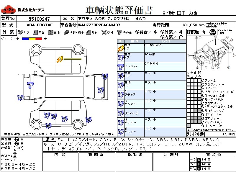 FULL(AC/オート,CD),5ニン,シュウチュウD,SRS,PSSRS,SSRS,ABS,クルース゛C,ナヒ゛/インダッシュ/HDD/2DIN,TV,Bカメラ,ETC,20AW,カワ/黒,スマートキー,テ゛ィスチャーシ゛,Pハ゛ックD