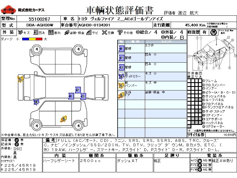 フル装備 / CD / 乗車定員(7人) / エアバッグ / 助手席エアバッグ / サイドエアバッグ / ABS / トラクションコントロール / クルーズコントロール / カーナビゲーション(インダッシュ,SSD,2DIN) / テレビ(アナログ) / 地デジTV / フリップダウンモニタ / バックカメラ / ETC / アルミホイール(社外)(19インチ) / ハーフレザーシート / スマートキー / パワースライドドア / パワーバックドア / フォグランプ / リアスポイラー /