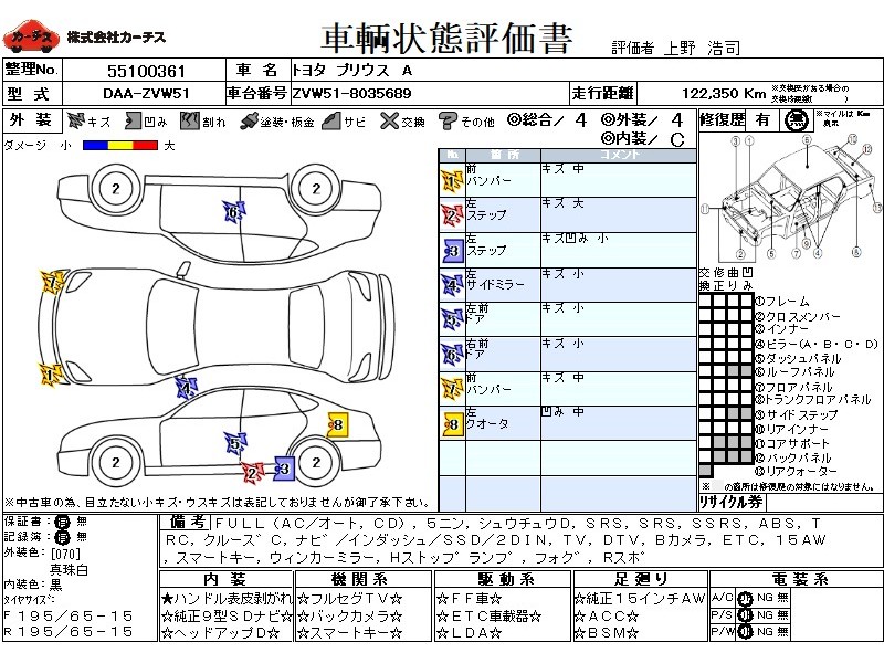 フル装備 / CD / 乗車定員(5人) / 集中ドアロック / エアバッグ / 助手席エアバッグ / サイドエアバッグ / ABS / トラクションコントロール / クルーズコントロール / カーナビゲーション(インダッシュ,SSD,2DIN) / テレビ(アナログ) / 地デジTV / バックカメラ / ETC / アルミホイール(15インチ) / スマートキー / ウインカーミラー / ハイマウントストップランプ / フォグランプ / リアスポイラー /