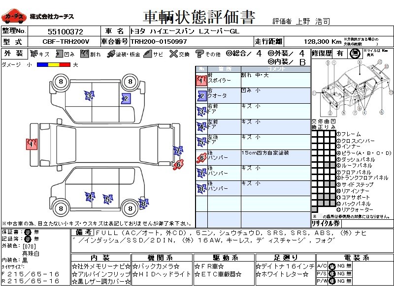 フル装備 / CD(社外) / 乗車定員(5人) / 集中ドアロック / エアバッグ / 助手席エアバッグ / ABS / カーナビゲーション(社外)(インダッシュ,SSD,2DIN) / 地デジTV(社外) / ETC(社外) / アルミホイール(社外)(16インチ) / キーレスエントリー / ディスチャージ / フォグランプ / フロントスポイラー(社外) /