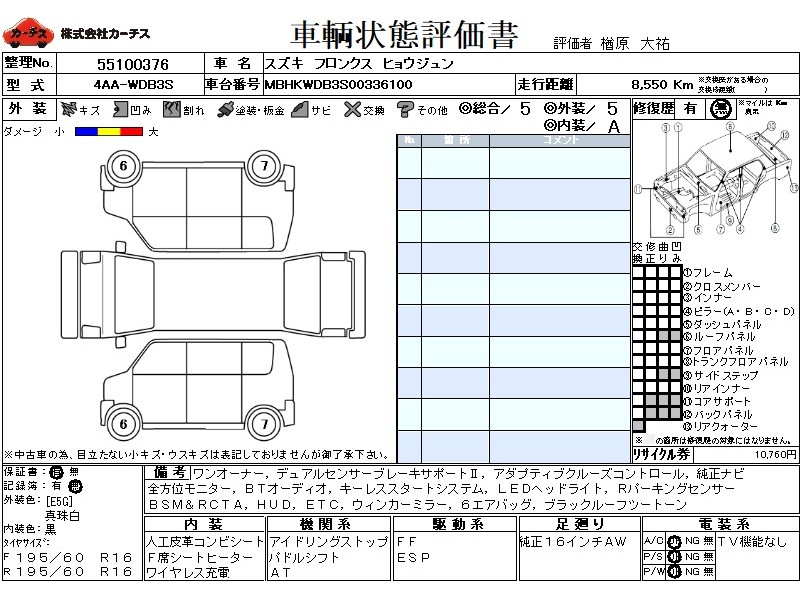 エアコン(オート) / パワーステアリング / パワーウィンドウ / エアバッグ / 助手席エアバッグ / サイドエアバッグ / ABS / トラクションコントロール / クルーズコントロール / カーナビゲーション(インダッシュ) / バックカメラ(フロント) / ETC(社外) / アルミホイール(16インチ) / スマートキー / ウインカーミラー / リアスポイラー /