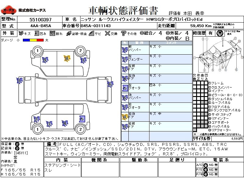 フル装備 / CD / 集中ドアロック / エアバッグ / 助手席エアバッグ / サイドエアバッグ / ABS / トラクションコントロール / クルーズコントロール / カーナビゲーション(インダッシュ,SSD,2DIN) / 地デジTV / バックカメラ(フロント) / ETC / アルミホイール(15インチ) / スマートキー / ウインカーミラー / ハイマウントストップランプ / パワースライドドア / フォグランプ / リアスポイラー /