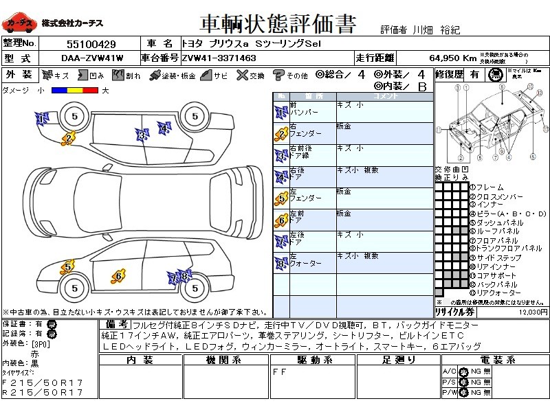 フル装備 / CD / 乗車定員(5人) / エアバッグ / 助手席エアバッグ / サイドエアバッグ / ABS / カーナビゲーション(SSD) / テレビ(アナログ) / 地デジTV / バックカメラ / ETC / アルミホイール(17インチ) / スマートキー / ウインカーミラー / ハイマウントストップランプ / フォグランプ / リアスポイラー / リアアンダースポイラー /