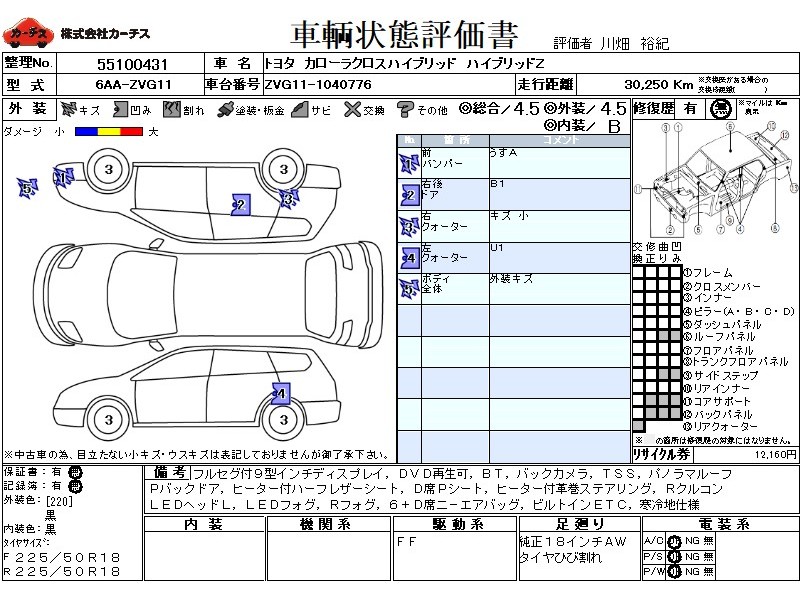 フル装備 / CD / 乗車定員(5人) / エアバッグ / 助手席エアバッグ / サイドエアバッグ / ABS / クルーズコントロール / バックカメラ / ETC / アルミホイール(18インチ) / ハーフレザーシート / スマートキー / ウインカーミラー / ハイマウントストップランプ / パワーバックドア / フォグランプ / リアスポイラー /