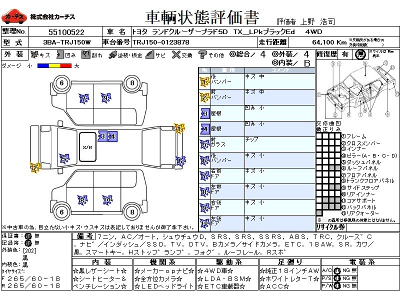 乗車定員(7人) / エアコン(オート) / パワーステアリング / パワーウィンドウ / 集中ドアロック / エアバッグ / 助手席エアバッグ / サイドエアバッグ / ABS / トラクションコントロール / クルーズコントロール / カーナビゲーション(インダッシュ,SSD) / テレビ(アナログ) / 地デジTV / バックカメラ(サイドカメラ) / ETC / アルミホイール(18インチ) / サンルーフ / 革シート(黒) / スマートキー / ハイマウントストップランプ / フォグランプ / ルーフレール / リアスポイラー /