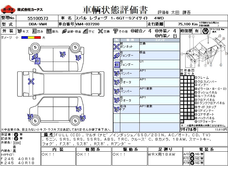 フル装備 / CD / マルチ(ナビ) / エアコン(オート) / 乗車定員(5人) / 集中ドアロック / エアバッグ / 助手席エアバッグ / サイドエアバッグ / ABS / トラクションコントロール / クルーズコントロール / 地デジTV / バックカメラ / ETC(社外) / アルミホイール(社外)(18インチ) / スマートキー / ウインカーミラー / ハイマウントストップランプ / フォグランプ / フロントスポイラー / サイドスポイラー / リアスポイラー / リアアンダースポイラー /