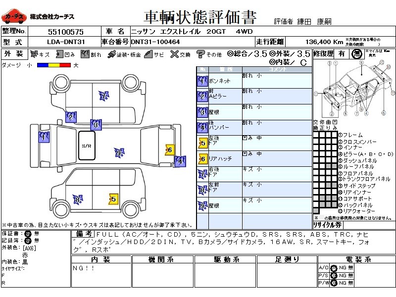 フル装備 / CD / 乗車定員(5人) / 集中ドアロック / エアバッグ / 助手席エアバッグ / ABS / トラクションコントロール / カーナビゲーション(インダッシュ,HDD,2DIN) / テレビ(アナログ) / バックカメラ(サイドカメラ) / アルミホイール(17インチ) / サンルーフ / スマートキー / ハイマウントストップランプ / フォグランプ / リアスポイラー /