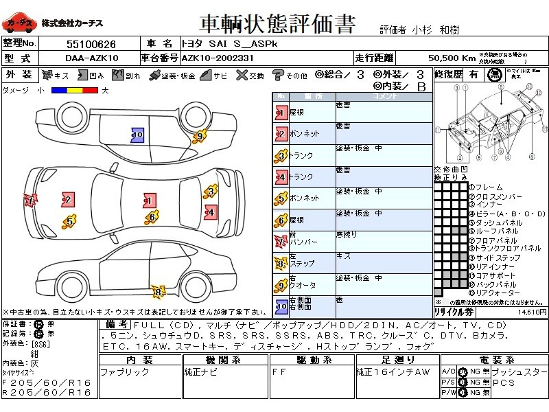 フル装備 / CD / マルチ(ナビ) / エアコン(オート) / テレビ(アナログ) / 乗車定員(5人) / 集中ドアロック / エアバッグ / 助手席エアバッグ / サイドエアバッグ / ABS / トラクションコントロール / クルーズコントロール / 地デジTV / バックカメラ / ETC / アルミホイール(16インチ) / スマートキー / ディスチャージ / ハイマウントストップランプ / フォグランプ /