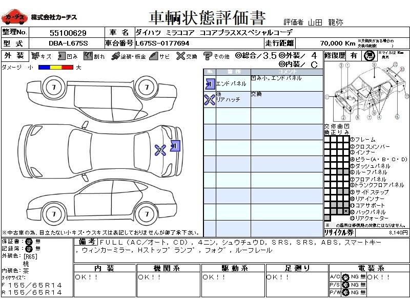 フル装備 / CD / 乗車定員(4人) / 集中ドアロック / エアバッグ / 助手席エアバッグ / ABS / スマートキー / ウインカーミラー / ハイマウントストップランプ / フォグランプ / ルーフレール /