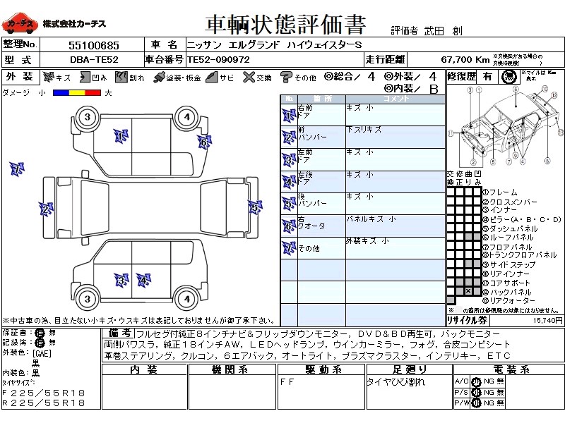 フル装備 / CD / 乗車定員(7人) / エアバッグ / 助手席エアバッグ / サイドエアバッグ / ABS / トラクションコントロール / クルーズコントロール / カーナビゲーション(SSD) / テレビ(アナログ) / 地デジTV / フリップダウンモニタ / バックカメラ / ETC / アルミホイール(18インチ) / スマートキー / ウインカーミラー / ハイマウントストップランプ / パワースライドドア / フォグランプ / サイドスポイラー / リアスポイラー /