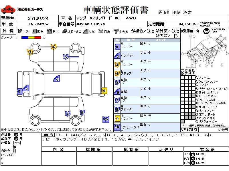 | 法定点検整備 | あり 契約後、納車までに実施 |