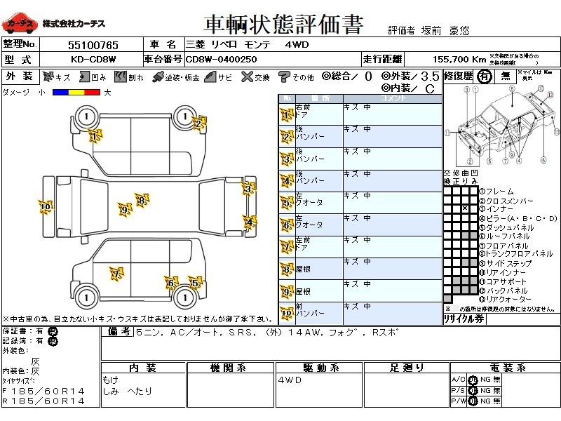 乗車定員(5人) / エアコン(オート) / パワーステアリング / パワーウィンドウ / エアバッグ / アルミホイール(社外)(14インチ) / フォグランプ / リアスポイラー /