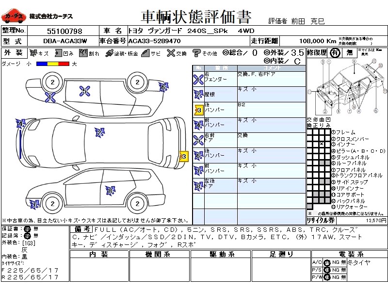 フル装備 / CD / 乗車定員(5人) / エアバッグ / 助手席エアバッグ / サイドエアバッグ / ABS / トラクションコントロール / クルーズコントロール / カーナビゲーション(インダッシュ,SSD,2DIN) / テレビ(アナログ) / 地デジTV / バックカメラ / ETC / アルミホイール(社外)(17インチ) / スマートキー / ディスチャージ / フォグランプ / リアスポイラー /