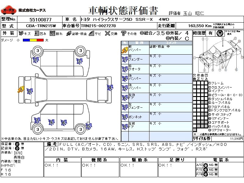 フル装備 / CD / 乗車定員(5人) / エアバッグ / 助手席エアバッグ / ABS / カーナビゲーション(インダッシュ,HDD,2DIN) / 地デジTV / バックカメラ / アルミホイール(16インチ) / キーレスエントリー / ハイマウントストップランプ / フォグランプ / リアスポイラー /