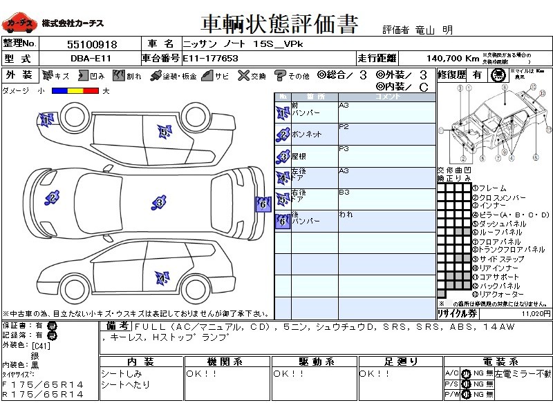 フル装備 / CD / 乗車定員(5人) / 集中ドアロック / エアバッグ / 助手席エアバッグ / ABS / ETC(社外) / アルミホイール(14インチ) / キーレスエントリー / ハイマウントストップランプ /