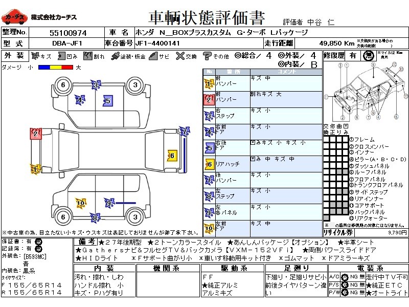 フル装備 / CD / 乗車定員(4人) / 集中ドアロック / エアバッグ / 助手席エアバッグ / サイドエアバッグ / ABS / トラクションコントロール / クルーズコントロール / カーナビゲーション(インダッシュ,SSD,2DIN) / 地デジTV / バックカメラ / ETC / アルミホイール(14インチ) / ハーフレザーシート / スマートキー / ディスチャージ / ウインカーミラー / ハイマウントストップランプ / パワースライドドア / フォグランプ / サイドスポイラー / リアスポイラー /